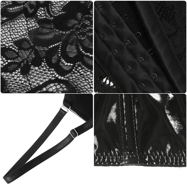This Bustier is Made of Soft PU Leather which can Give you a Beautiful Silhouette. The Cup is Padded and has An Underwire so it Gives Complete Support for you. It is Designed to Define A Waistline and Accentuate A Bust Line. Come with 3 Rows of Hook and Eye Closures so that it can be Fit to your Size. Adjustable and Removable Shoulder Straps are Better to fit you needs.
