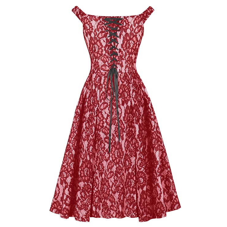 Embrace the festive spirit in this elegant burgundy lace Christmas dress! Crafted with intricate floral lace patterns, this retro-inspired gown features a flattering off-shoulder neckline and a defined waist that flows into a graceful A-line skirt. The adjustable back sash tie allows for a customized fit while adding a touch of timeless charm. Perfect for Christmas parties, holiday gatherings, or romantic dinners, this dress combines vintage elegance with modern comfort. Lightweight and fully lined for a smooth silhouette, it’s your go-to outfit for celebrating in style.