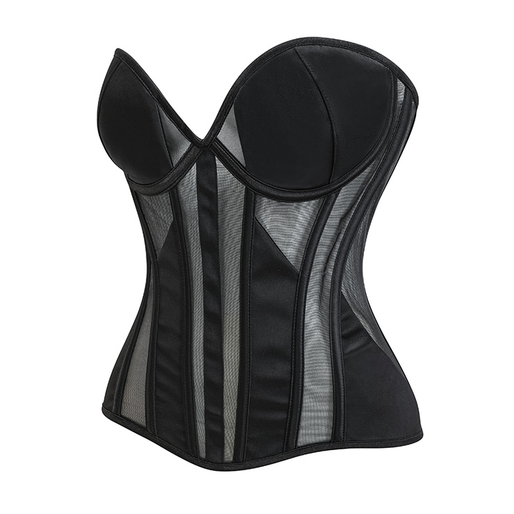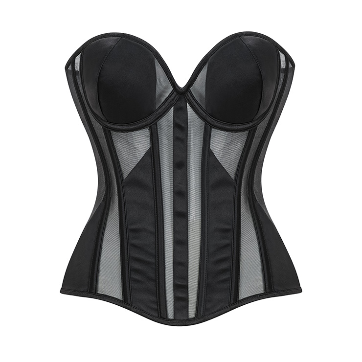 Sculpt your silhouette in this elegant black strapless corset. Designed for all-day shaping comfort, it features structured front cups with breathable mesh panels and a fully adjustable back lace-up closure for a contoured, hourglass fit. Made from smooth, compressive fabric, it gently smoothes and lifts for seamless shaping under any outfit—perfect for daily wear or special occasions.
