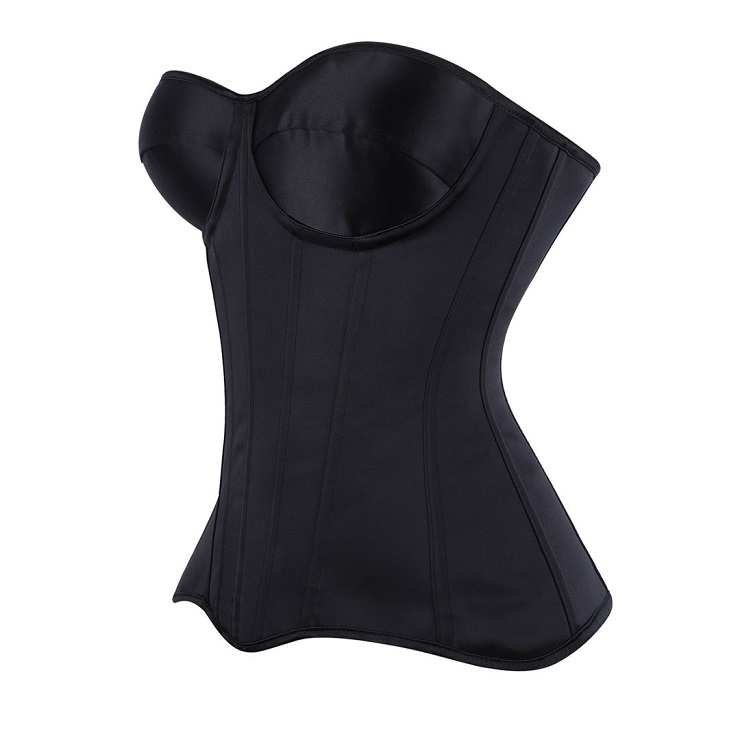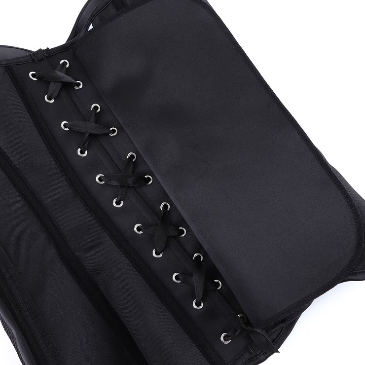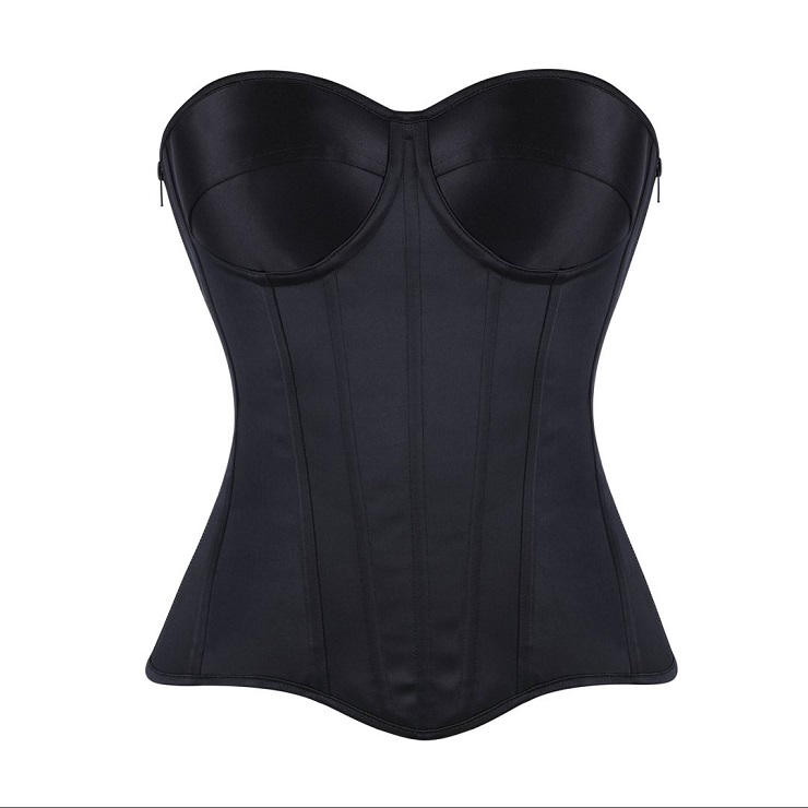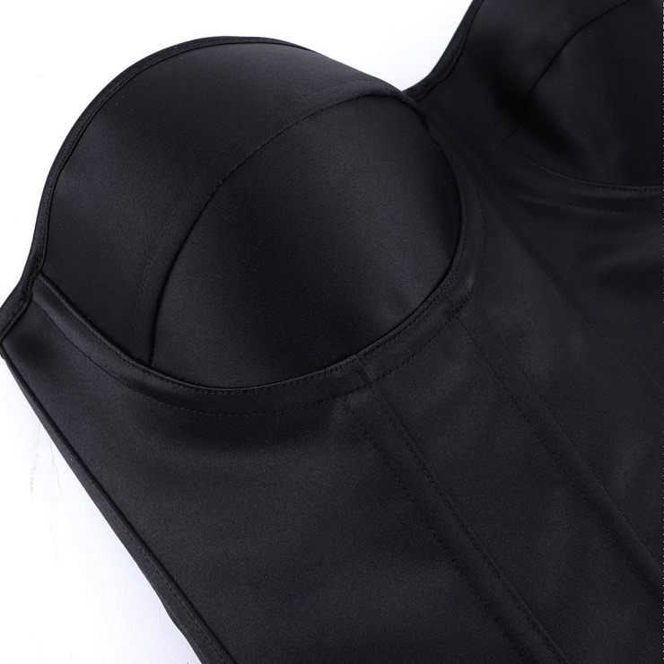 Achieve a sculpted silhouette with this sleek black strapless corset. Featuring a front lace-up closure for adjustable cinching, built-in boning for support, and a discreet side zipper for easy wear. Made from smooth, elastic fabric, it offers comfortable shaping—ideal for layering or as a standout piece for evenings and special occasions.