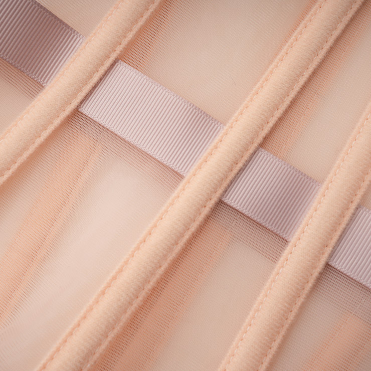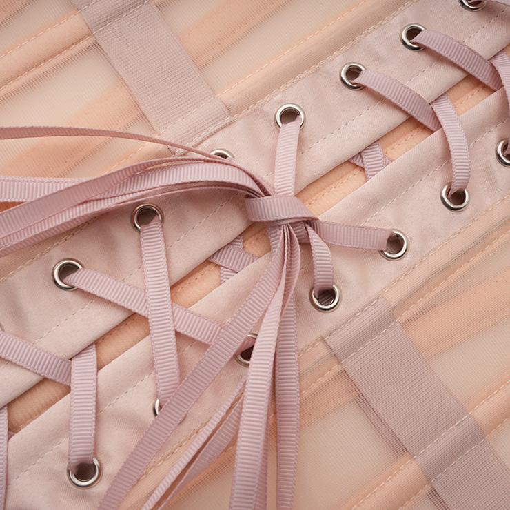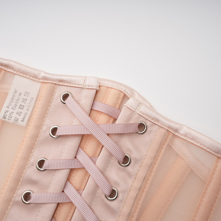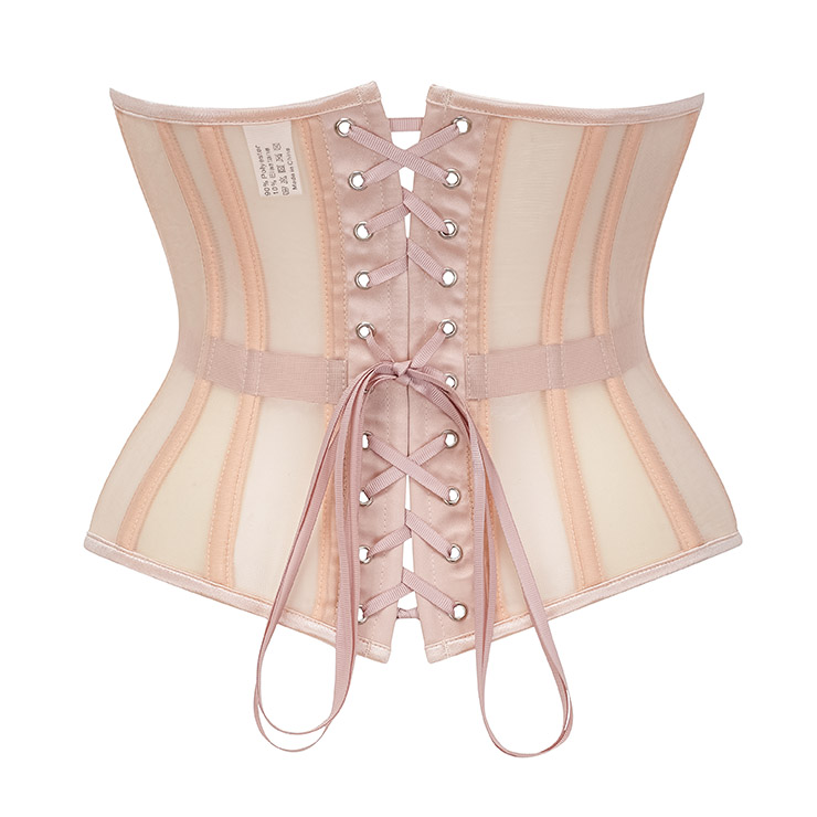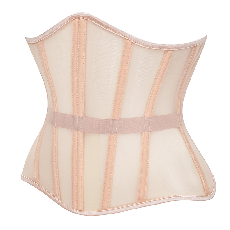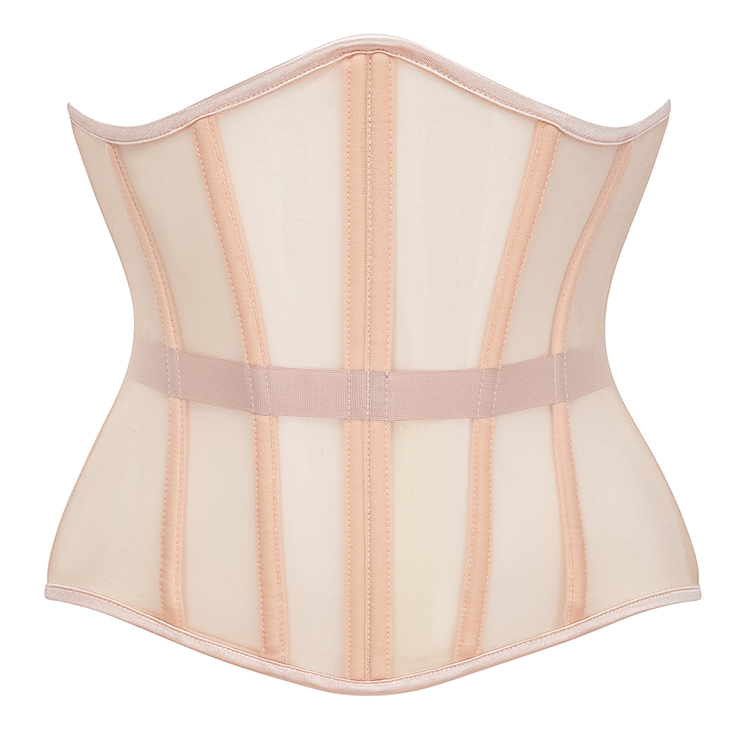 Breathable black mesh waist training corset waspie, includes 16 steel bones such as 2 Stainless Steel Busk Closure, 4 Flat Steel bones, 10 Spiral Steel Bones. Mesh fabric more breathable than others, It is usefui for waist tape reinforcement. G-string not included.